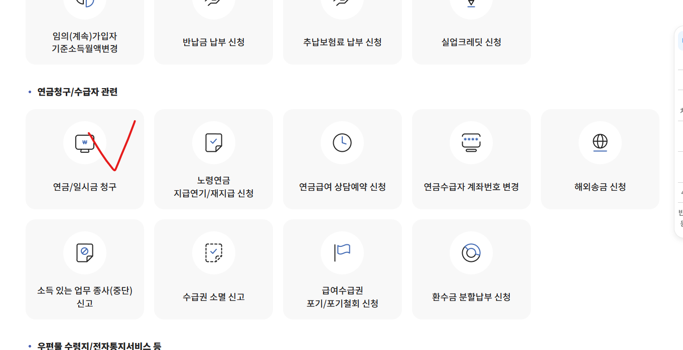 연금/일시금 청구 클릭해서 들어오시면 됩니다.