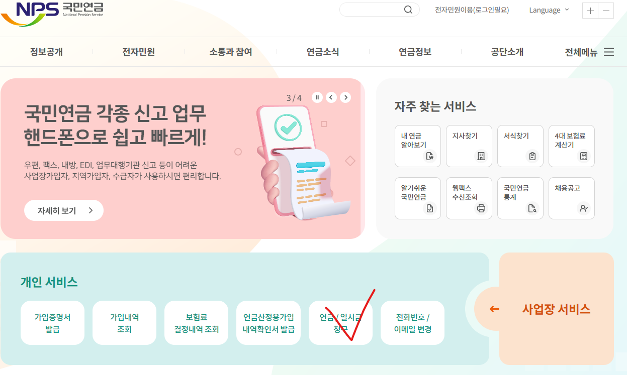 국민연금공단 홈페이지 : https://www.nps.or.kr/