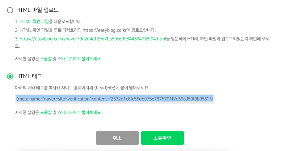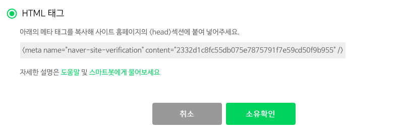 이제 네이버 서치 바이저로 돌아와서 소유확인 버튼 눌러주면 끝입니다.