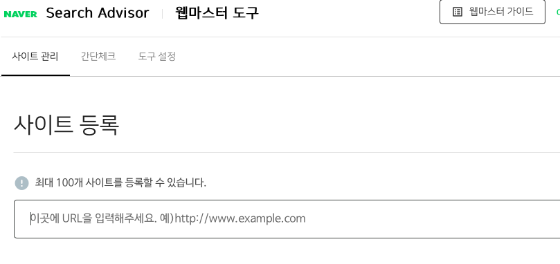 이제 사이트 등록을 시작해봅시다. 사이트는 대표적으로 네이버, 구글 , 빙 세가지를 등록 하면 됩니다.