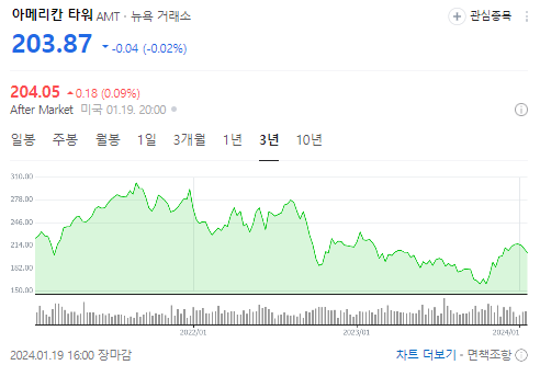 제가 시작한 종목은 AMT 아메리칸타워입니다. 현재가로는 203달러로 1회차 시작 했습니다.